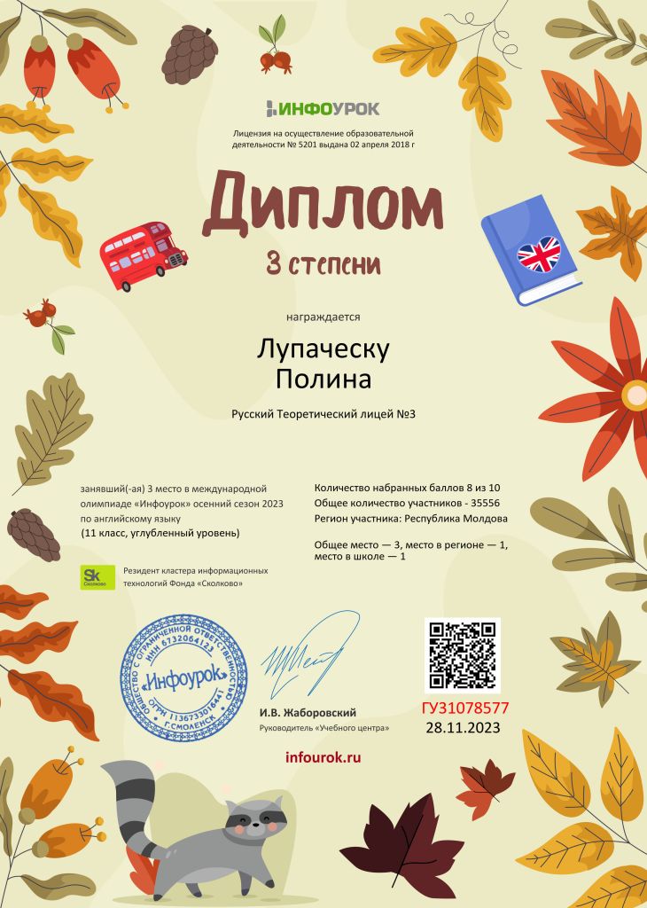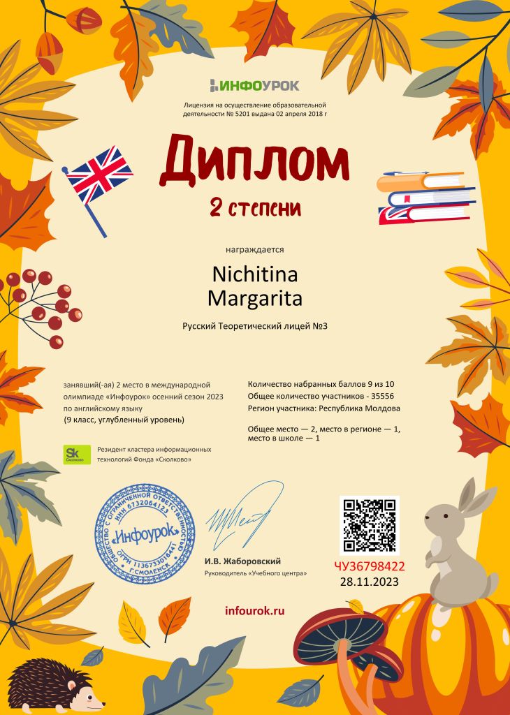 Participation in the district, national and international Olympiads, contests, projects.